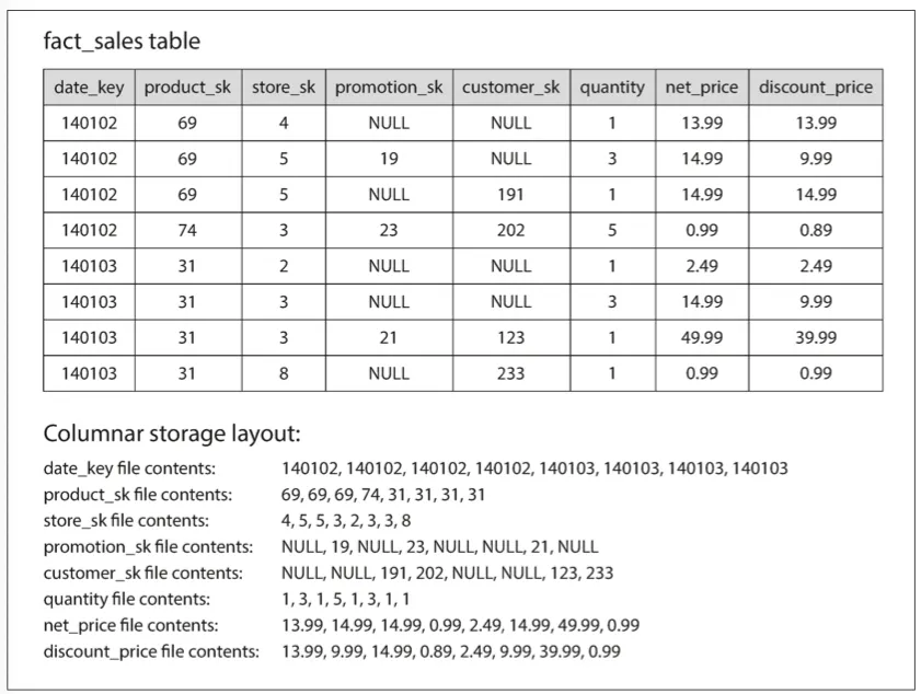 fact_sales 에서 3개의 column 에만 접근하는데 date_key, product_sk 둘 중하나에만 색인이 있다고 가정하자. 이 색인은 엔진에 특정 날짜나 특정 제품의 모든 판매 내용을 찾을 수 있는 위치를 알려준다.