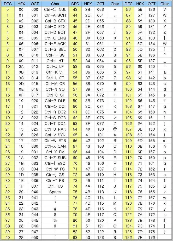 여기서 나오는 값들이 char 에서 사용되는 값이다.