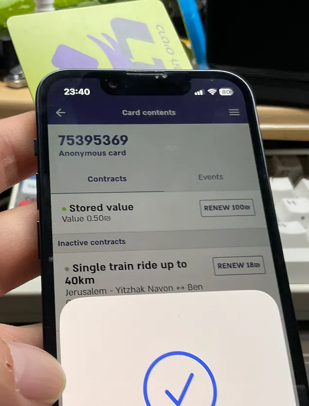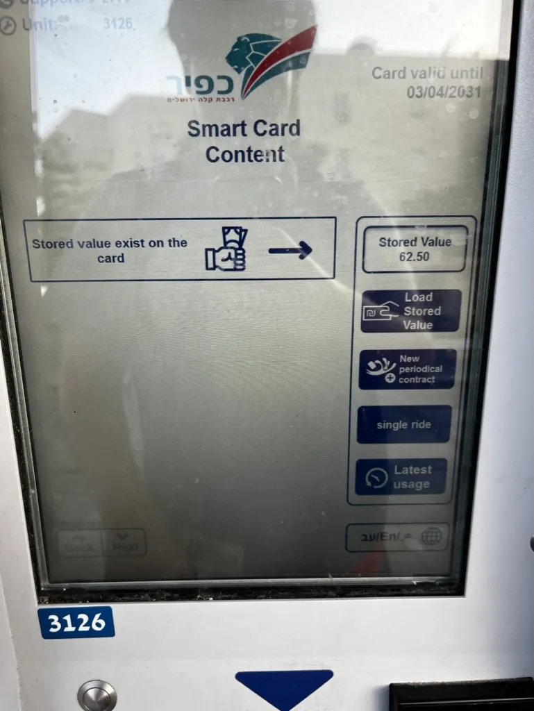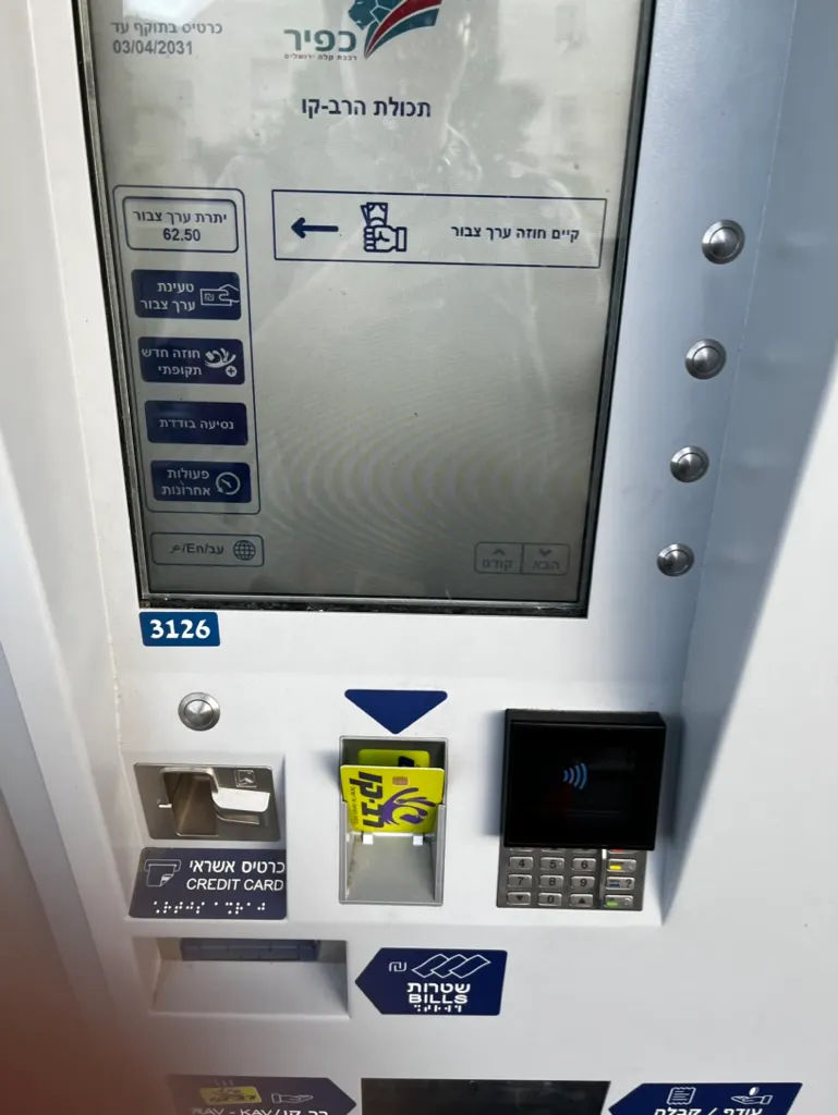 단, 이 카드는 1년의 유효기간을 갖습니다. 1년이 지났다면 이스라엘의 kav-rav 오피스에 방문하여 기간을 연장해달라고 요청할 수 있습니다.