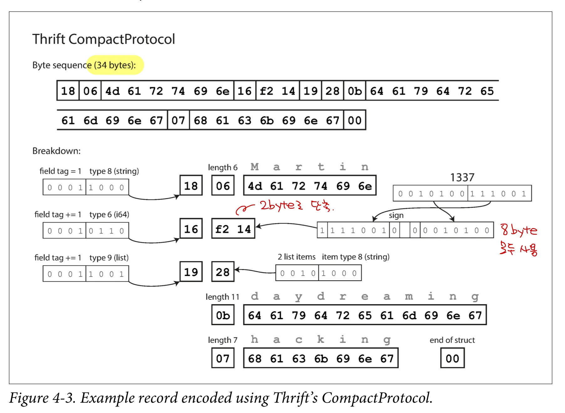 binary protocol - thrift의 binary protocol 스키마로 부호화된 모습