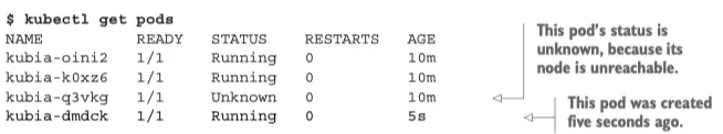 cluster node 에 장애가 발생하면 해당 node 에서 실행 중인 모든 pod 에 관한 교체 복제본이 생성된다. (재배치가 아니라 재생성)