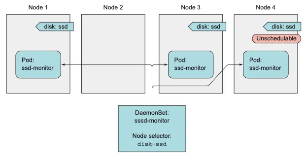 SSD 를 갖는 node에서 실행해야 하는 ssd-monitor 라는 데몬이 있다고 가정하자