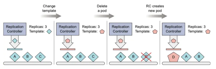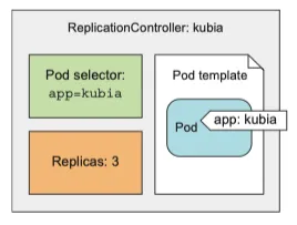 위 그림에서 replication controller 는 하나의 파드만 관리하지만 일반적으로 여러 pod 를 관리한다.