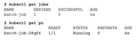 이러한 기능은 k8s 가 job 이라는 resource 에서 제공하며 실행중인 process 가 성공적으로 완료되면 container 를 다시 시작하지 않는다.