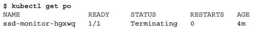 5초 마다 표준 출력으로 "SSD OK" 를 출력하는 process 를 실행하는 데몬셋이다.