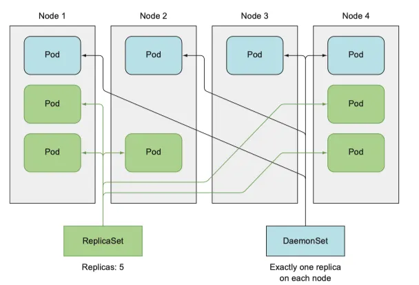 새 node 가 cluster 에 추가되면 daemon set은 즉시 새 pod instance 를 새 node 에 배포한다