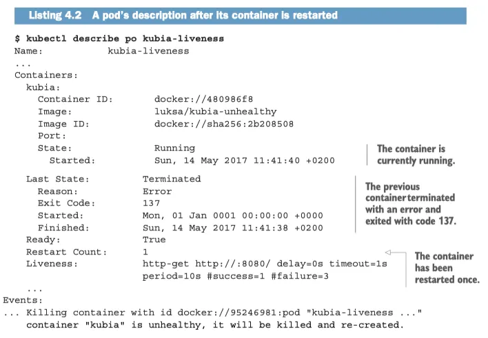 kubectl describe 로 컨테이너가 다시 시작된 이유를 파악할 수 있다.-