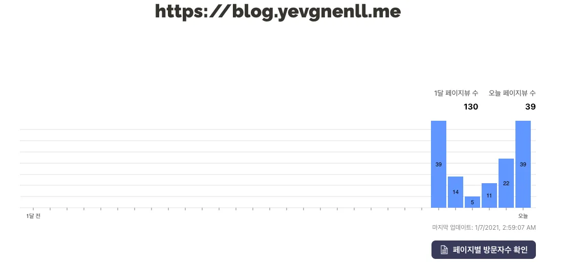 통계는 물론 개선할 부분, 추가 되었으면 하는 지표가 많다. 하지만, 구글 애널리틱스로 이미 대체가 가능하고
