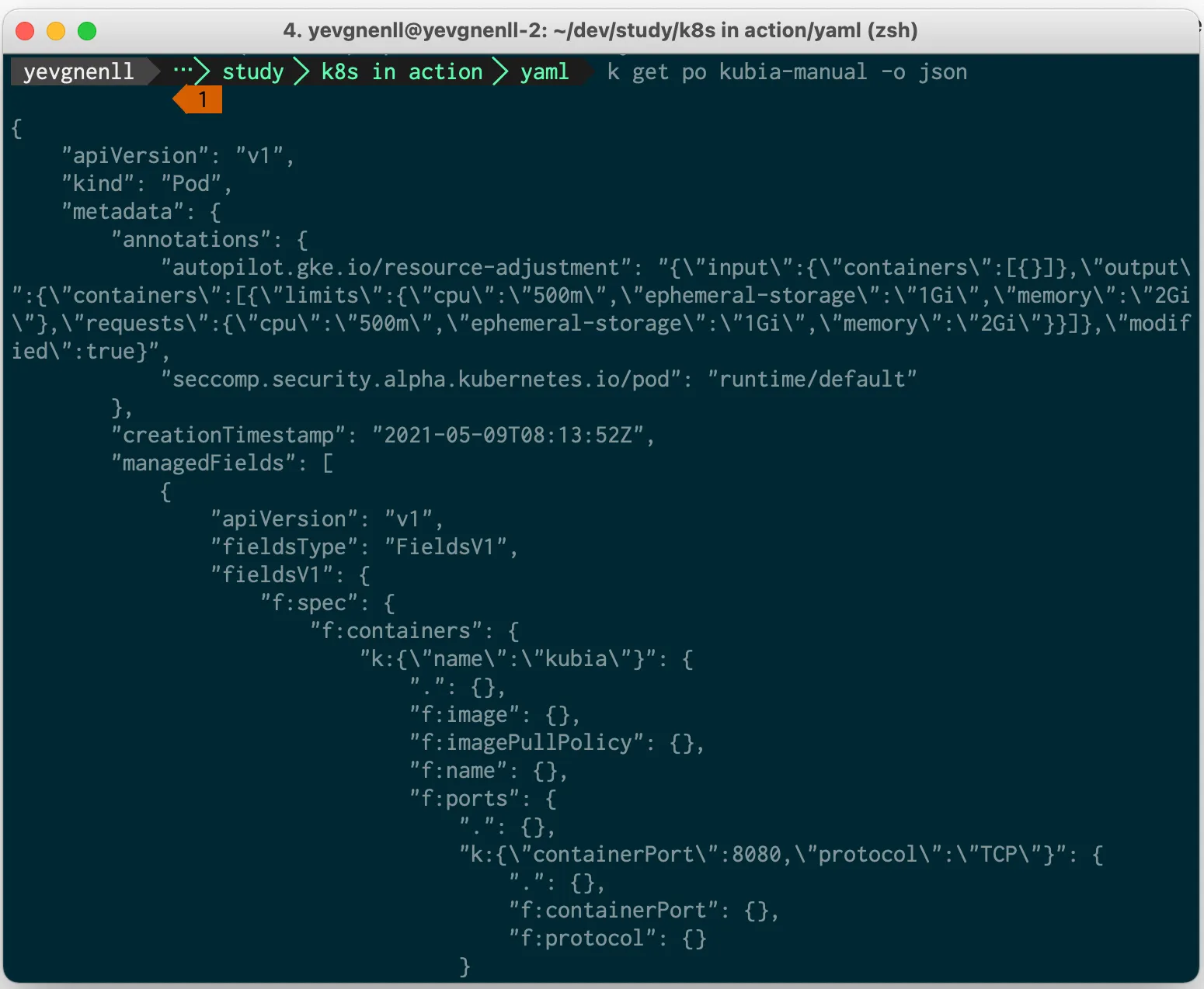 kubectl get po kubia-manual -o json