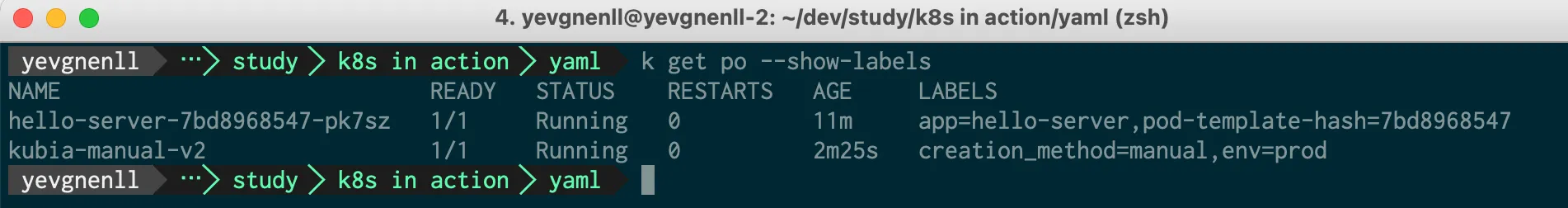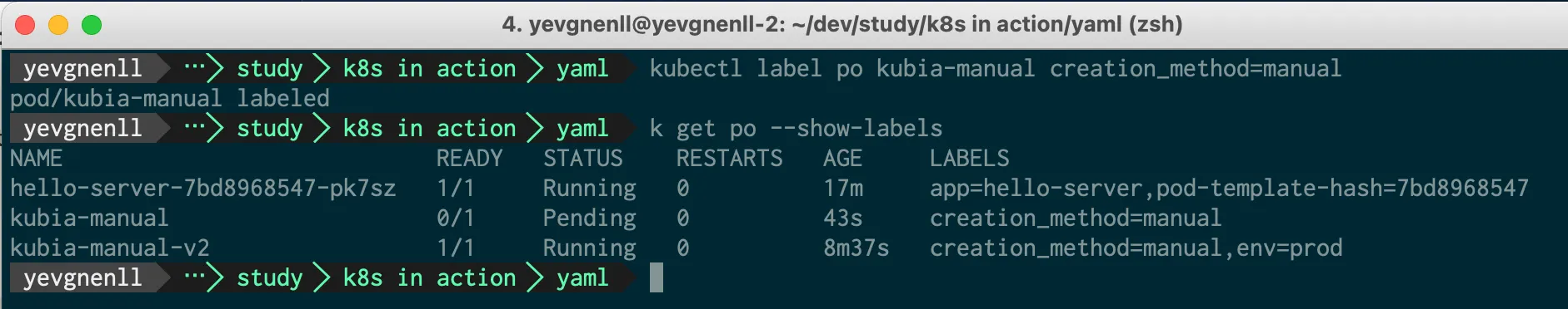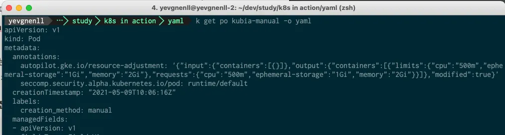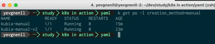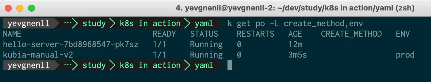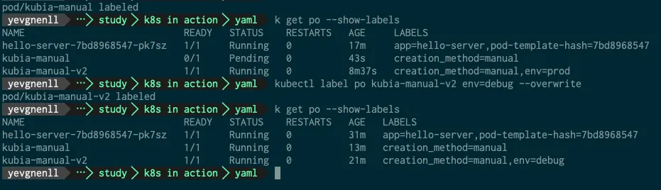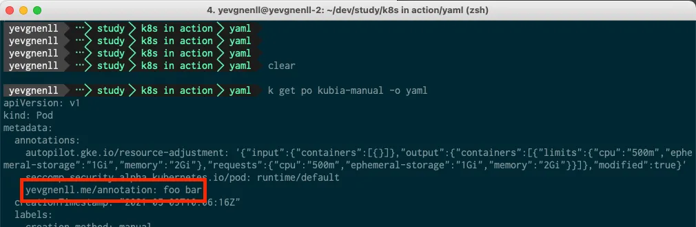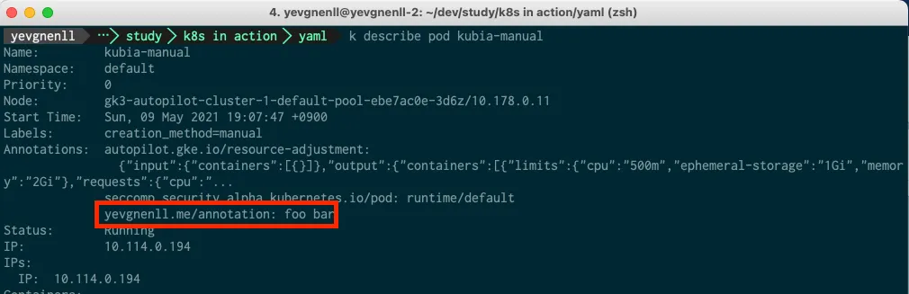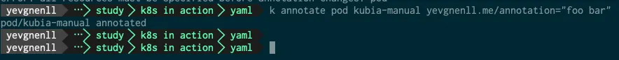 kubectl annotate pod kubia-manual yevgnenll.me/annotation="foo bar"
