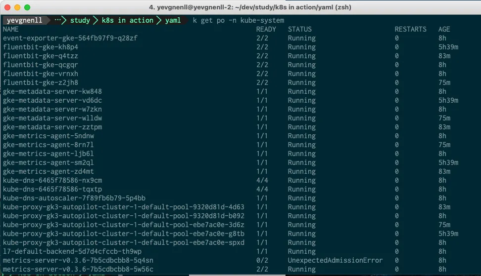 이름으로 추측하면 k8s의 system 과 관련된 파드들이다.