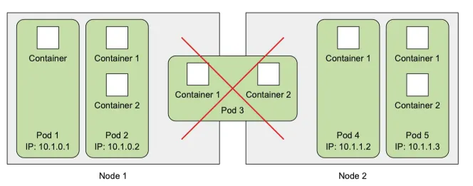 파드의 모든 container 는 항상 같은 위치에서 실행되어야 한다 하지만, 웹 서버와 DB가 같은 머신에서 실행 될 필요는 없다.