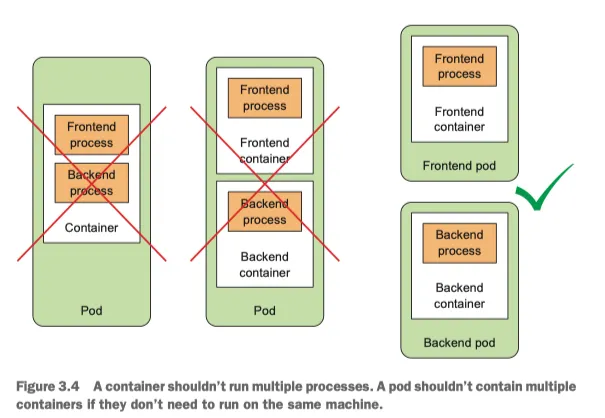 front end, back end 가 각각 다른 스케일리의 요구사항을 갖게 될 것이므로 개별적으로 확장하는 경향이 있다. 개별적 확장이 필요하다 별도 파드에 배포해야 한다.