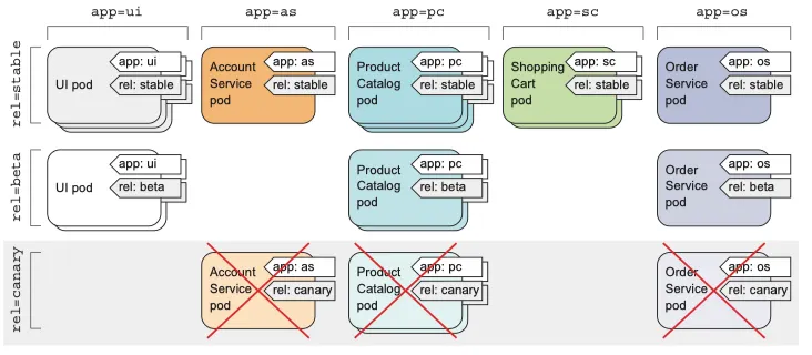 rel=canary 레이블 셀렉터를 이용해 모든 canary 파드 삭제