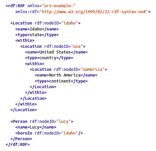 _:lucy a :Person; :name "Lucy"; :bornIn _:idaho.