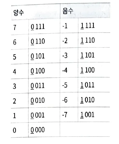 4비트 중 하나는 부호를 표현한 값이다. → 3비트