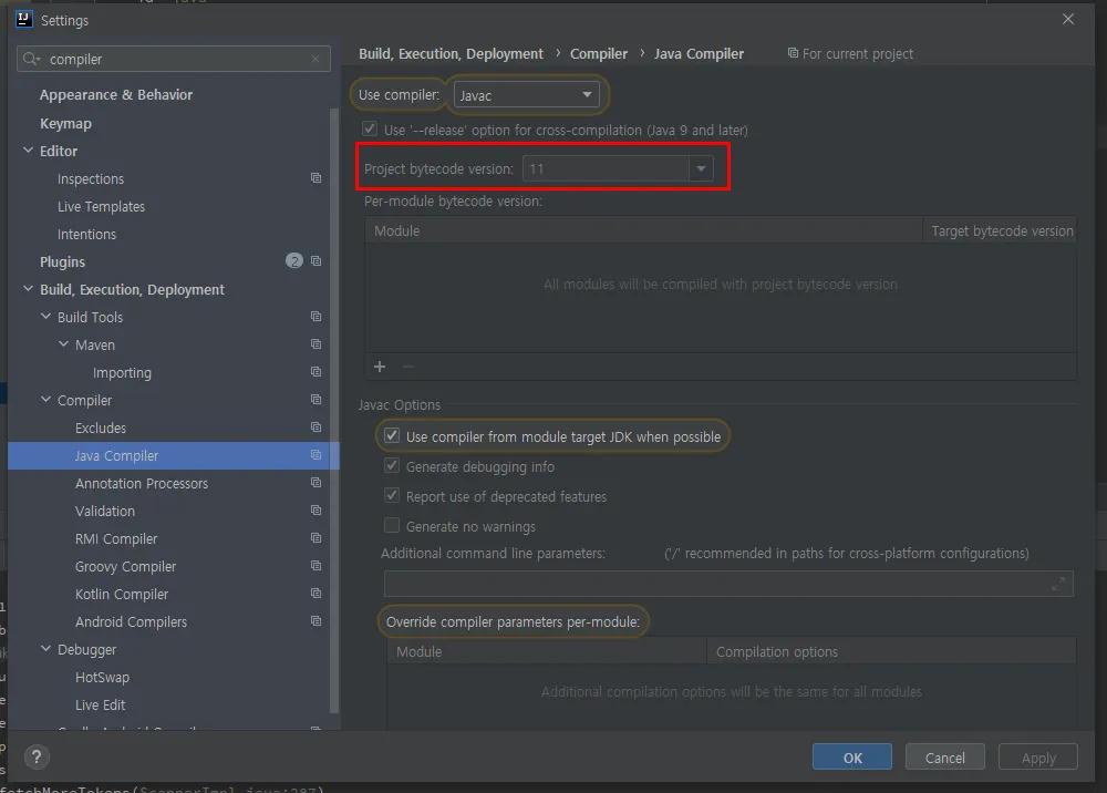 어떠한 모듈에서 특정한 java 버젼을 사용하고 싶다면 Per-module 에 추가할 수 있다.