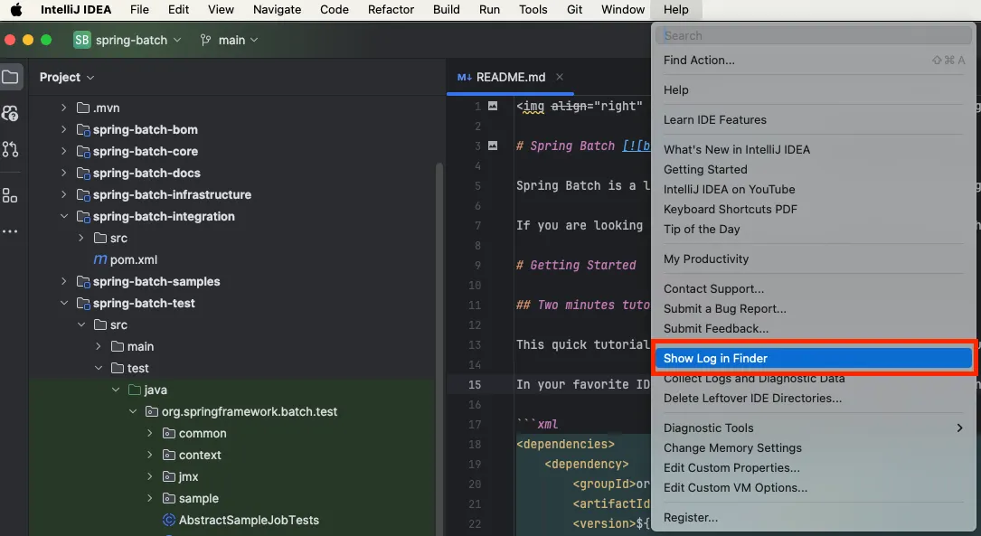 IntelliJ 에서 발생한 로그는 여기서 확인할 수 있다.