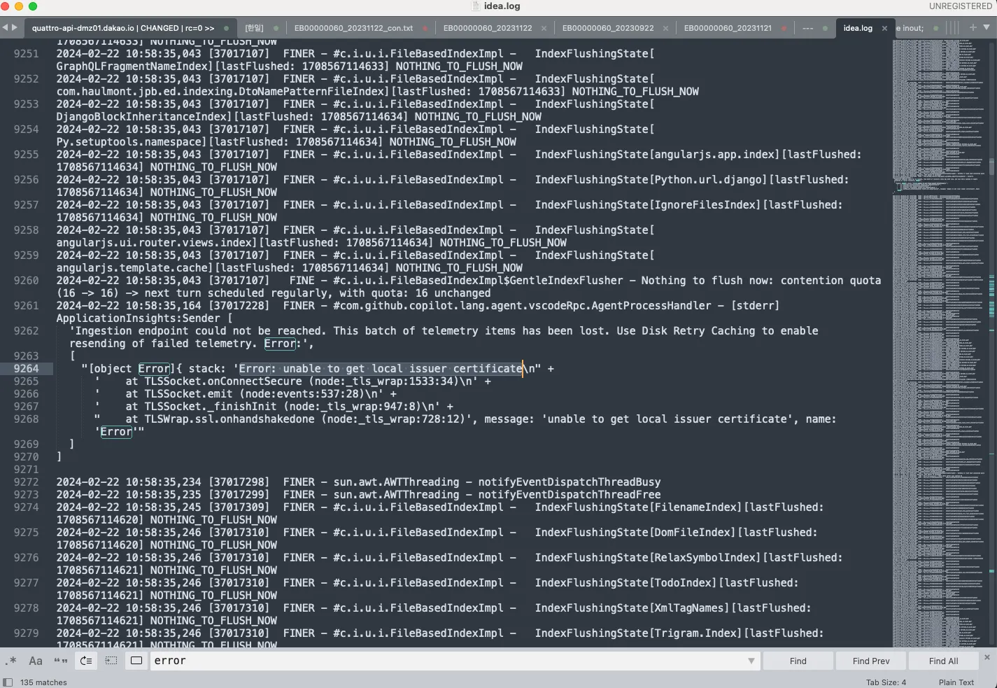 무엇을 고쳐야 하는지 알아내기 위해서 IntelliJ의 로그를 열어보자.