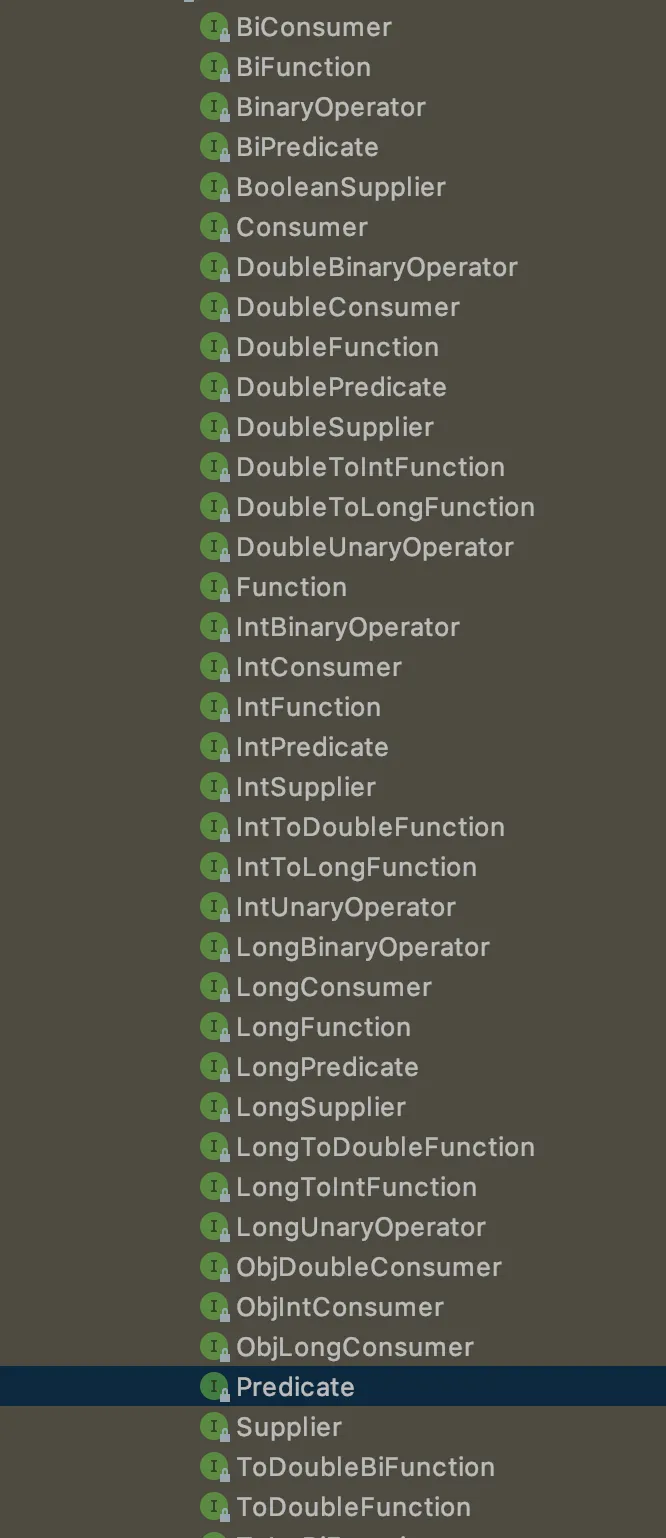 Stream 의 filter 에서 사용하는데 boolean 과 같다고 볼 수 있습니다. 보통 if 문 안에 condition 이 길면 별도의 private 함수를 만들어 사용했는데 람다를 이용해 더 쉽게 만들거나 바로 람다 자체로 사용하는것도 가능합니다