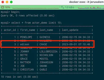 트랜잭션 a에서 commit한 직후, 트랜잭션 b에서 select를 해보면 edison이 edi로 변경된 것을 확인할 수 있다.