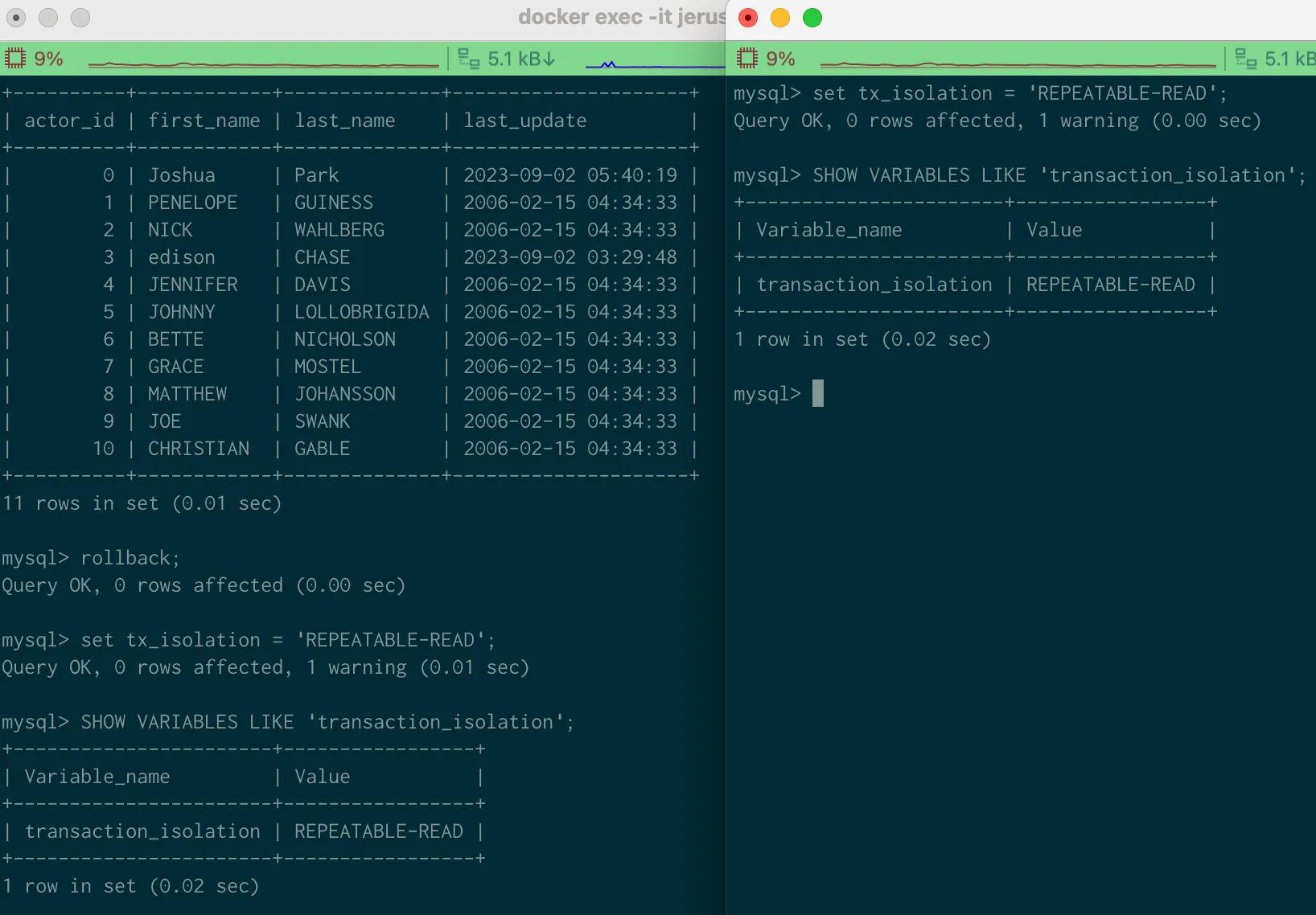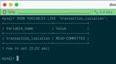 SHOW VARIABLES LIKE 'transaction_isolation';