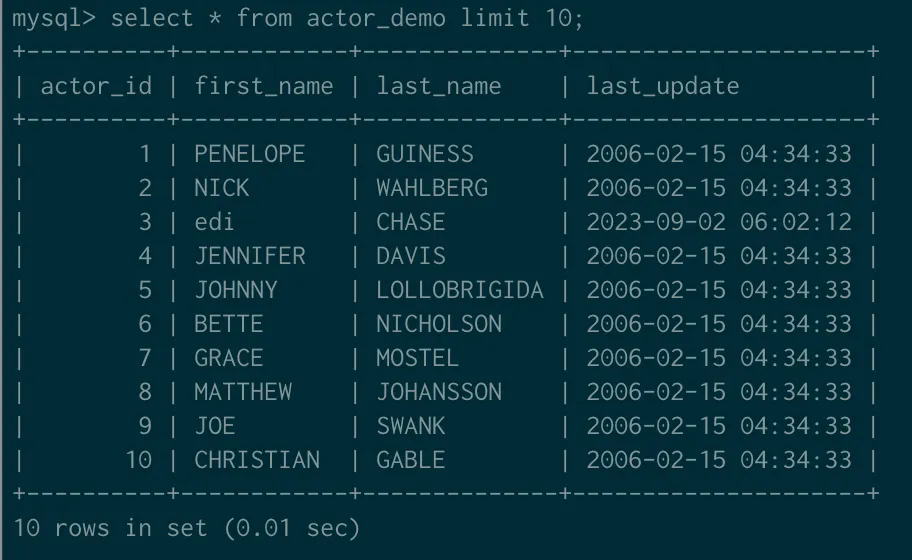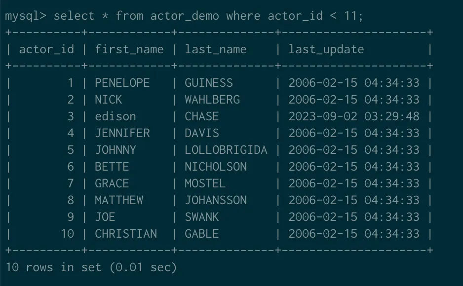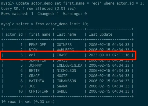 update actor_demo set first_name = 'edi' where actor_id = 3;