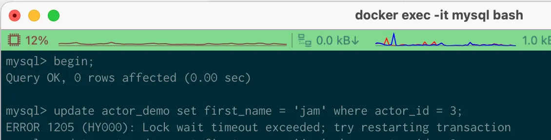 Lock wait timeout이 초과되어 wait이 종료되었다.