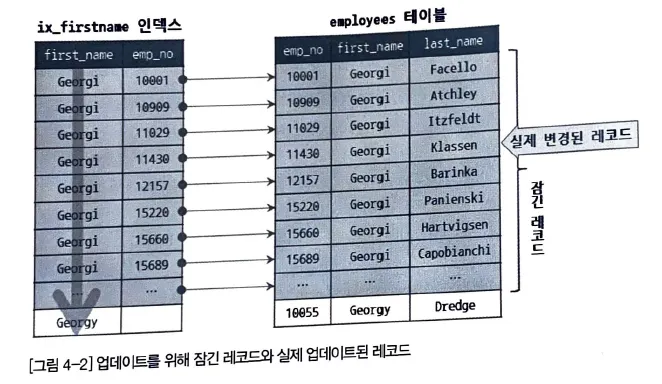 InnoDB table 은 storage engine 차원에서 record 기반의 잠금을 제공하기 때문에 단순 data 변경 query 로 인해 묵시적인 table lock 이 설정되지 않는다.