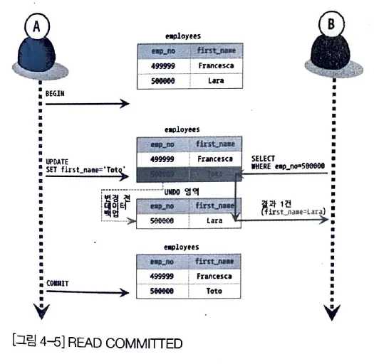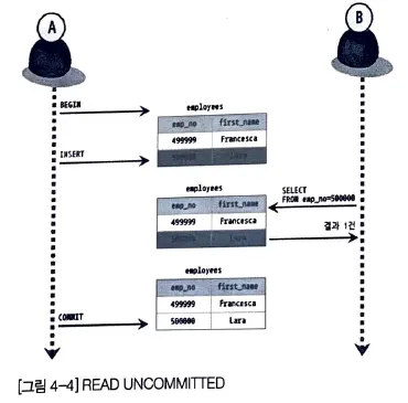User A는 그 도중에 Lara를 Toto로 변경하고 commit 을 실행해 transaction을 종료했다.