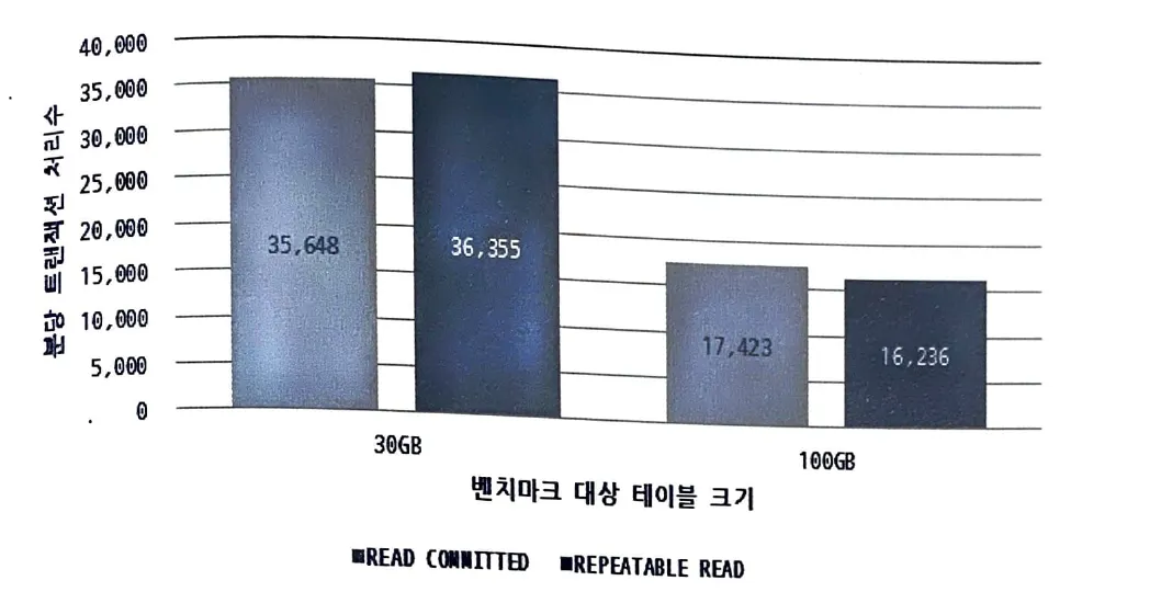 1GB와 30GB 크기의 테이블에서 Repeatable read가 2% 정도 높은 성능을 보였다