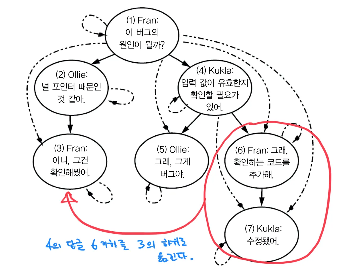 insert into Comments(comment_id, path, author, comment)values(1, '1/', 'Fran', '이 버그의 원인이 뭘까?' ), (2, '1/2/', 'Ollie', '널 포인터 때문인 것 같아'),(3, '1/2/3/', 'Fran', '아니, 그건 확인해봤어.'), (4, '1/4/', 'Kukla', '입력값이 효한지 확인할 필요가 있어'),(5, '1/4/5/', 'Ollie', '그래, 그게 버그야'), (6, '1/4/6/', 'Fran', '그래, 확인하는 코드를 추가해'),(7, '1/4/6/7/', 'Kukla', '수정됐어.');