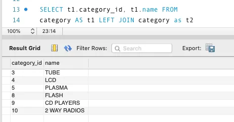 LEFT JOIN category AS t2 ON t2.parent = t1.category_id