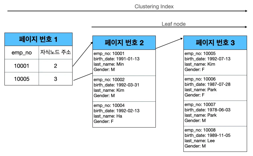 즉, Clustering table 은 그 자체에 하나의 거대한 index 구조로 관리되는 것이다.