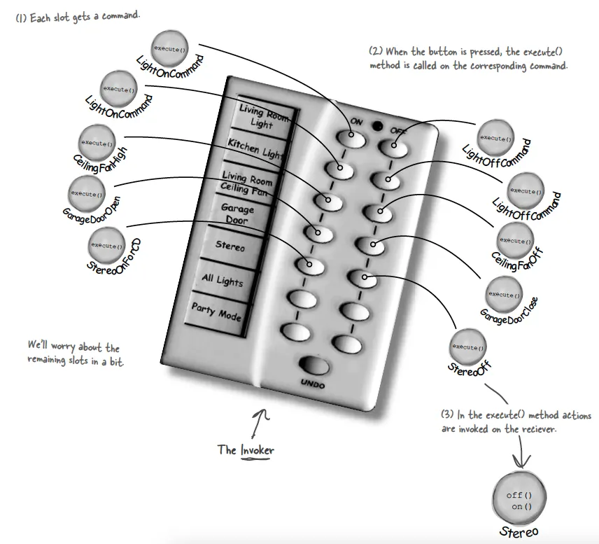 // Invoker 역할을 수행한다. public class SimpleRemoteControl { private Command slot; public void setSlot(Command command) { this.slot = command; } public void buttonWasPressed() { slot.execute(); } }