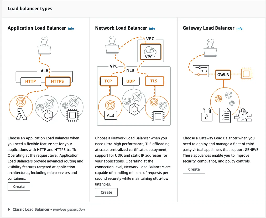 그 중 고려해야 하는 것은 ALB(Application Load Balancer) 와 NLB(Network Load Balancer) 이다.